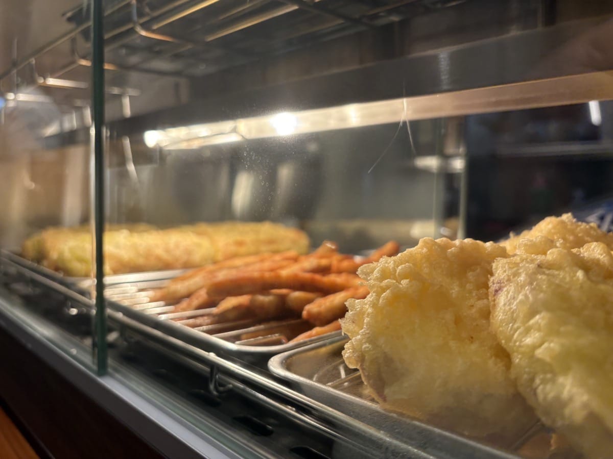 保温機に入っている芋天、ごぼ天、磯辺揚げが美味そう・・・